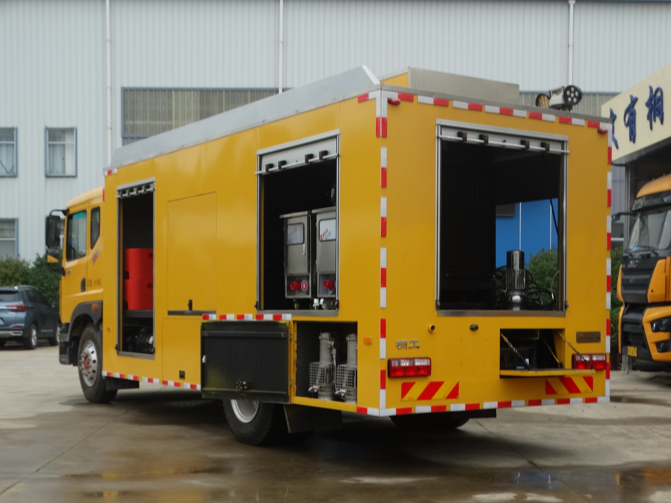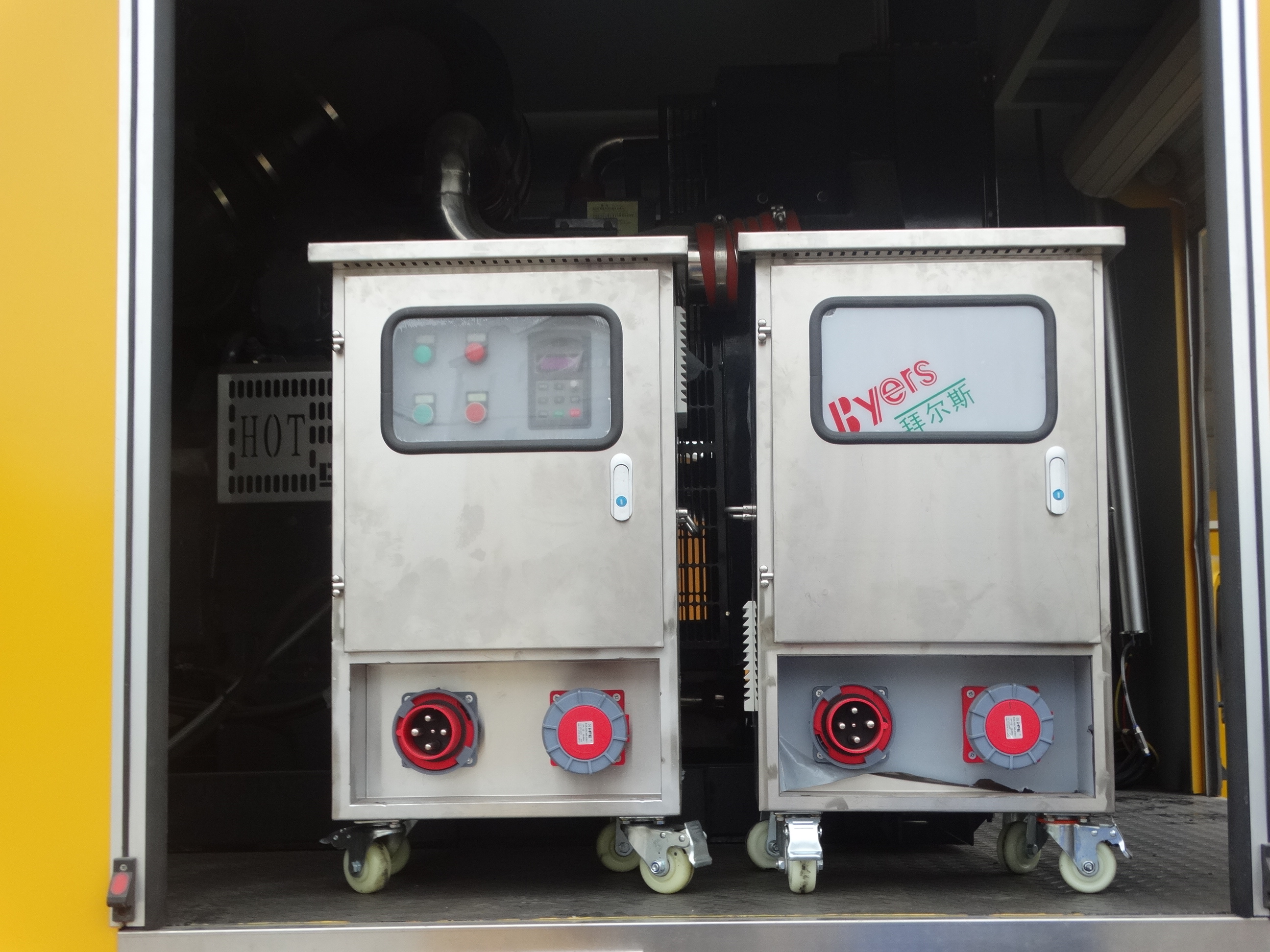 3.车厢内装配知名品牌发电机组,性能稳定,输出380V电压,由发电机组提供电源直接驱动潜水泵,无需外接任何电源,现场紧急用电时也可作为应急电源供电。