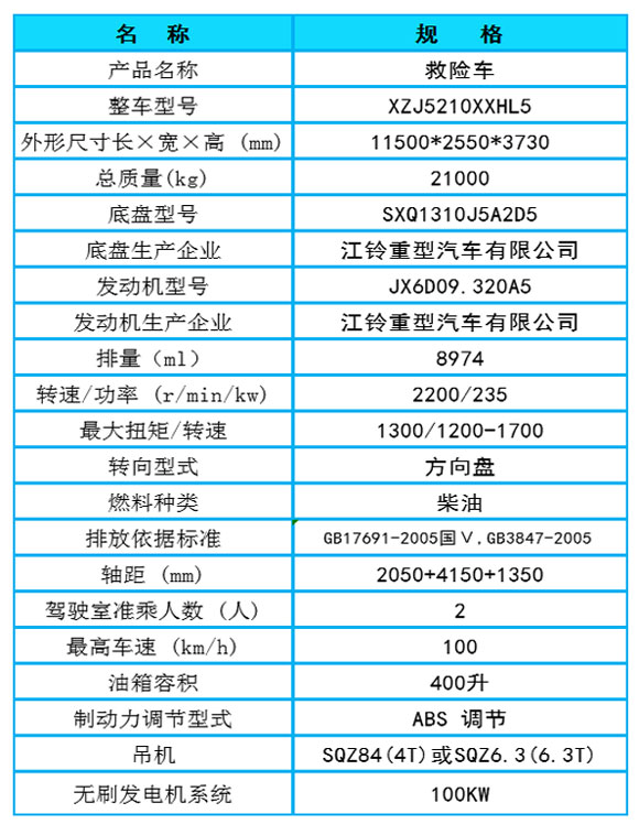 新款车型 XZJ5210XXHL5救险车 重磅来袭